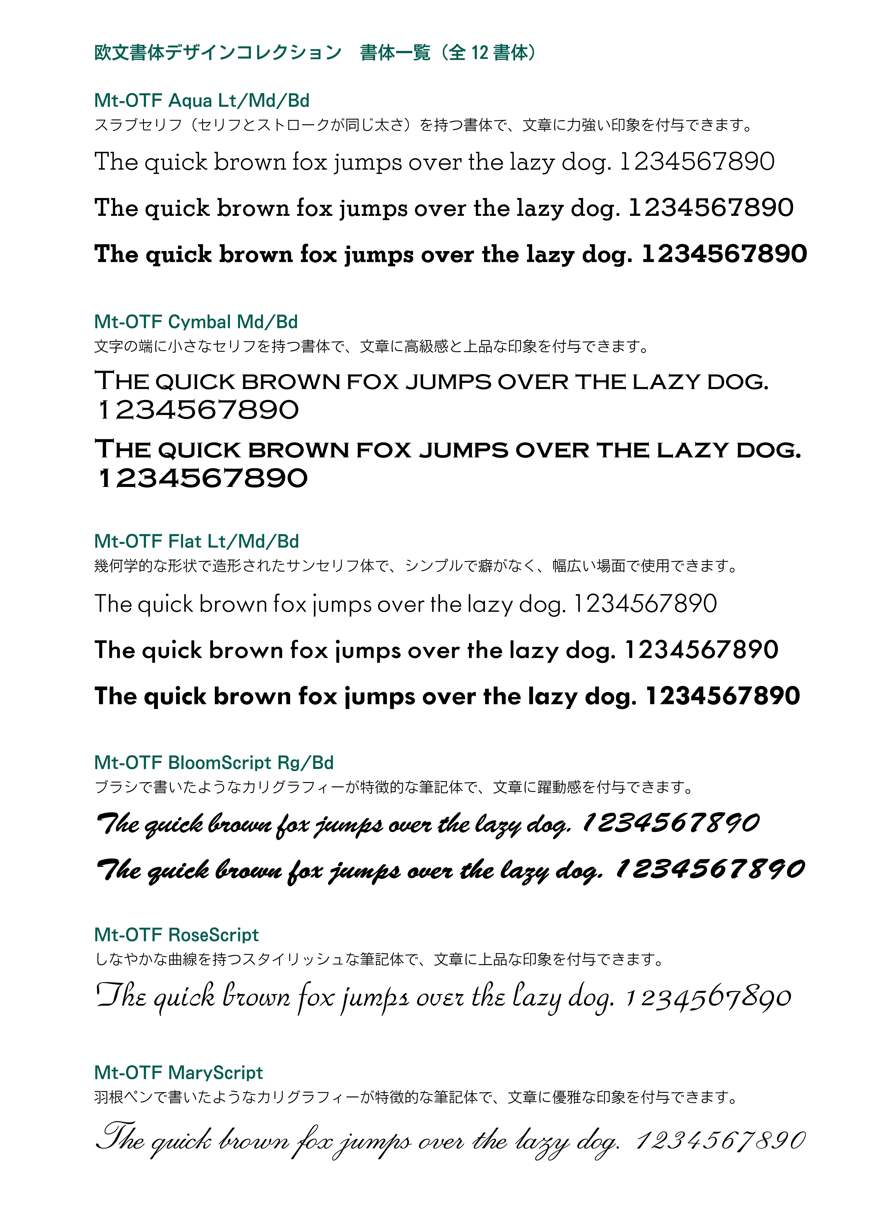 詳細 : https://www.motoyafont.jp/font-list/alfabet_collection.html