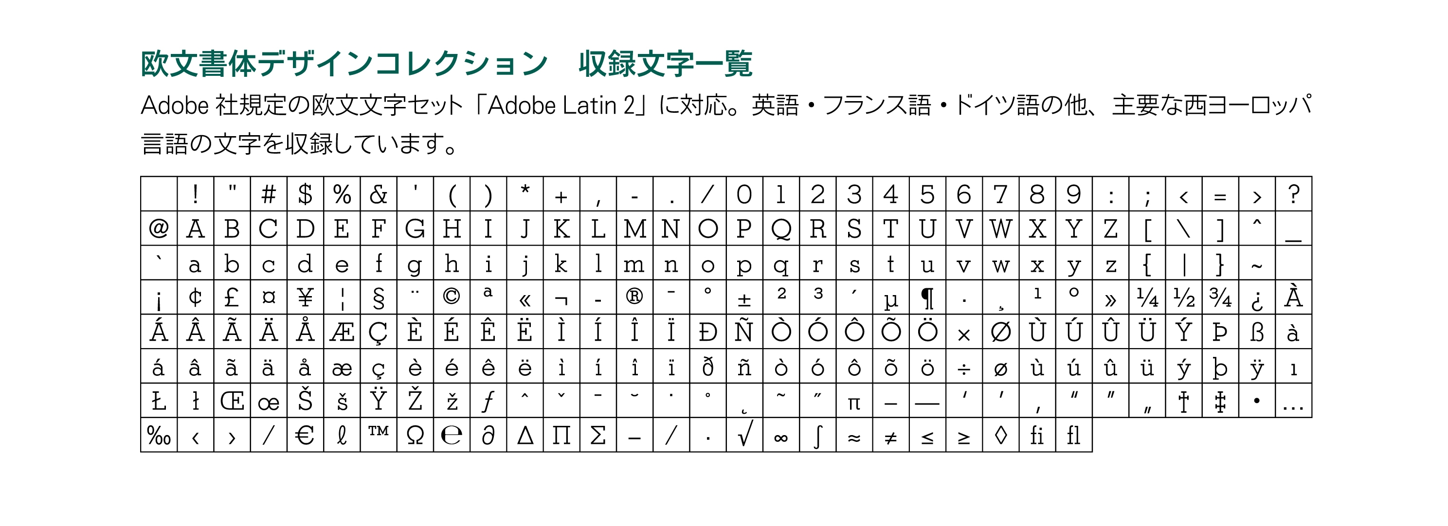 内容 :Adobe社規定のラテン文字セットのひとつ。