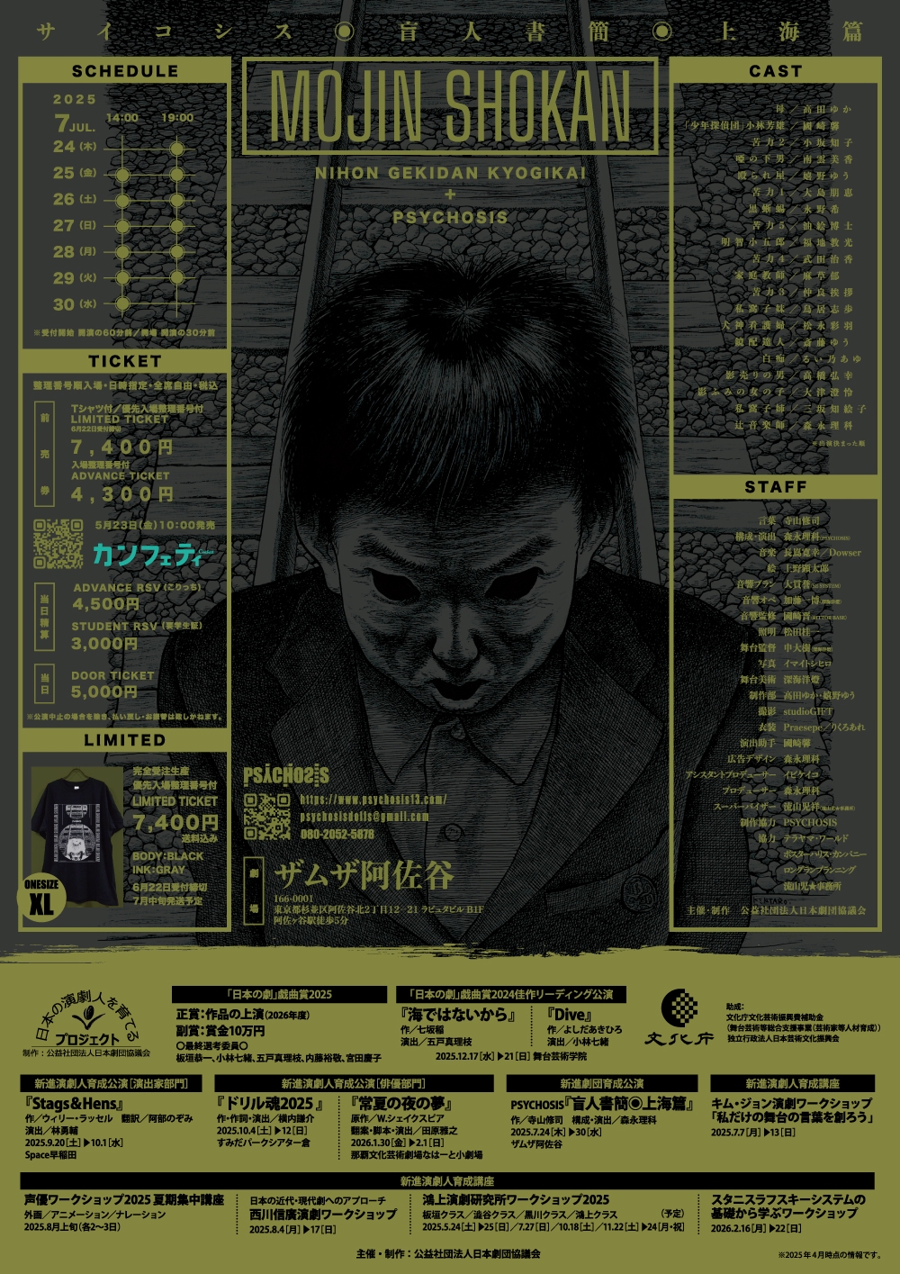 「日本の演劇人を育てるプロジェクト」新進劇団育成公演 寺山修司生誕90年記念認定事業 PSYCHOSIS『盲人書簡◉上海篇』が2025年7月24日 (木) ~ 2025年7月30日 (水)にザムザ阿佐谷(東京都杉並区阿佐ヶ谷北2-12-21)にて上演されます。