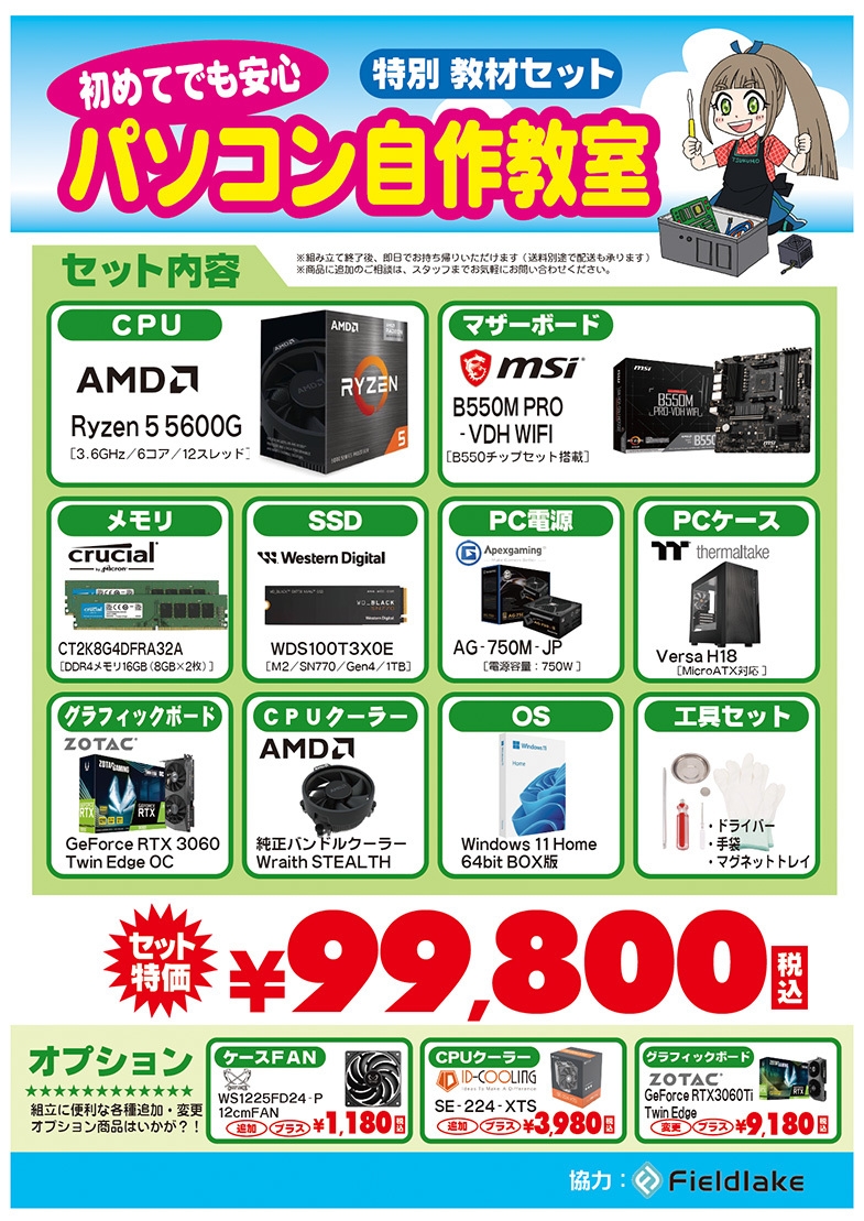AMD自作ゲーミングパソコン 入門教材セット 99,800円(税込)