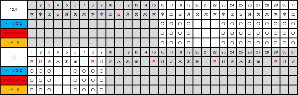 DAY OUT WITH THOMAS(TM) 2022 冬の特別運転 開催カレンダー