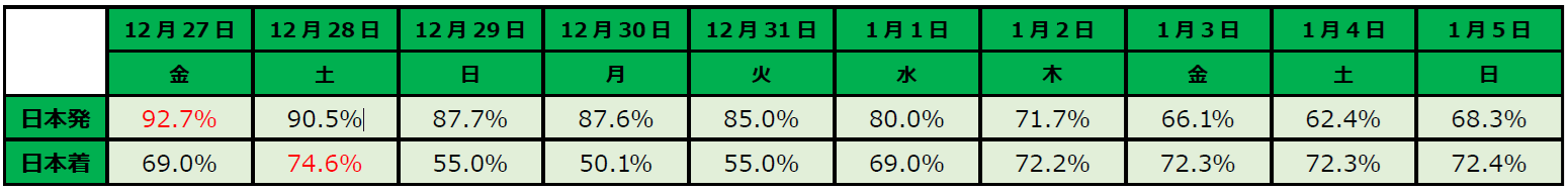 ※日本発・日本着それぞれ、一番高い搭乗率を赤で表記しています。