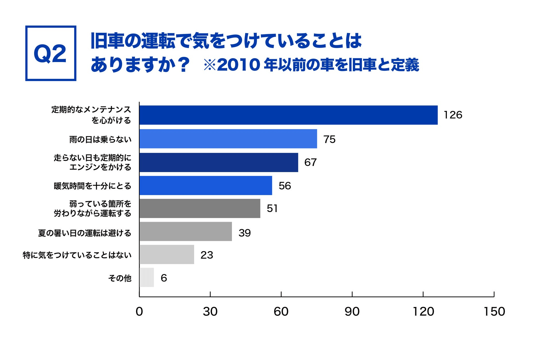 Q2.旧車の運転で気をつけていることはありますか?※2010年以前の車を旧車と定義