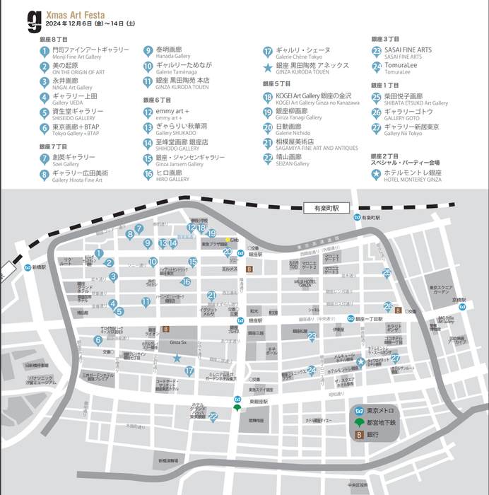銀座のギャラリー約40軒で組織され、中央区や全銀座会とも連携し、芸術文化の振興に努めている任意団体です。流行・文化の発祥地である国内最大の画廊街の銀座で、多くの人に画廊巡りを楽しんでもらえるようなイベントを年3回開催しています。