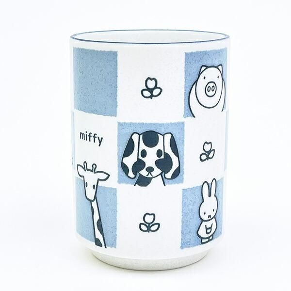 どうぶつとミッフィーがイラストされた湯呑もおすすめです。今時なかわいさのくすみブルーで、ギフトにもよさそうです。わんちゃん、ぶたさん、きりんさん、、、
