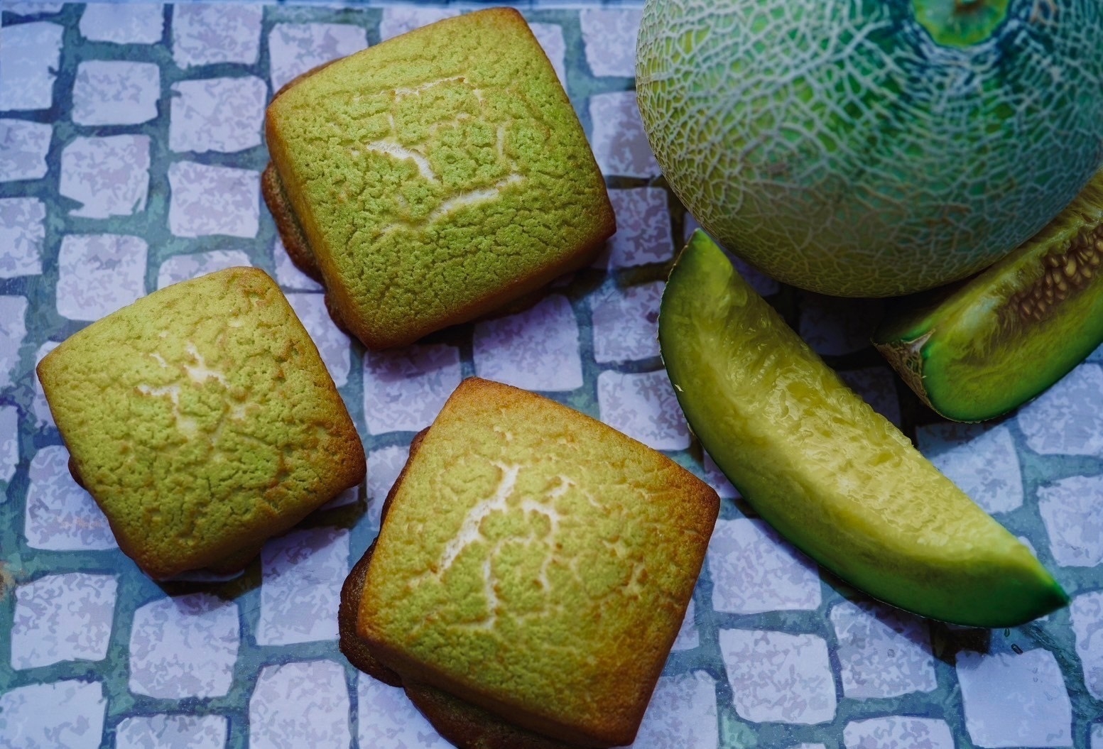 ・茨城が誇る生産量日本一のメロンを使った【イバラキメロンのパヴェ】は水を使わず県産のメロンピューレを100%使い、香料を一切使わずに創り上げた贅沢な逸品。