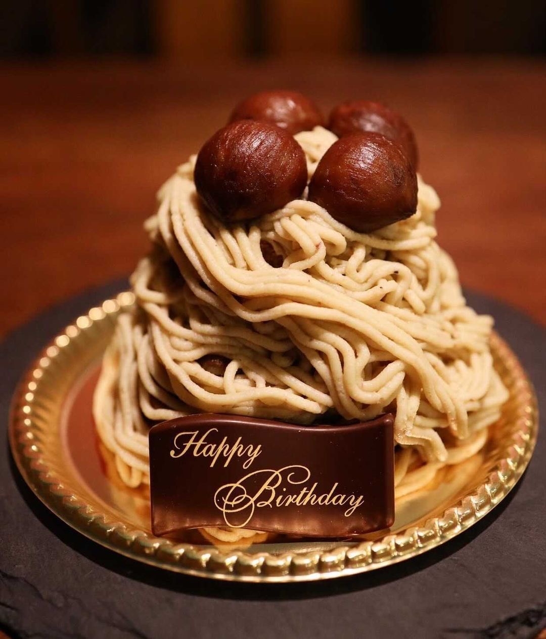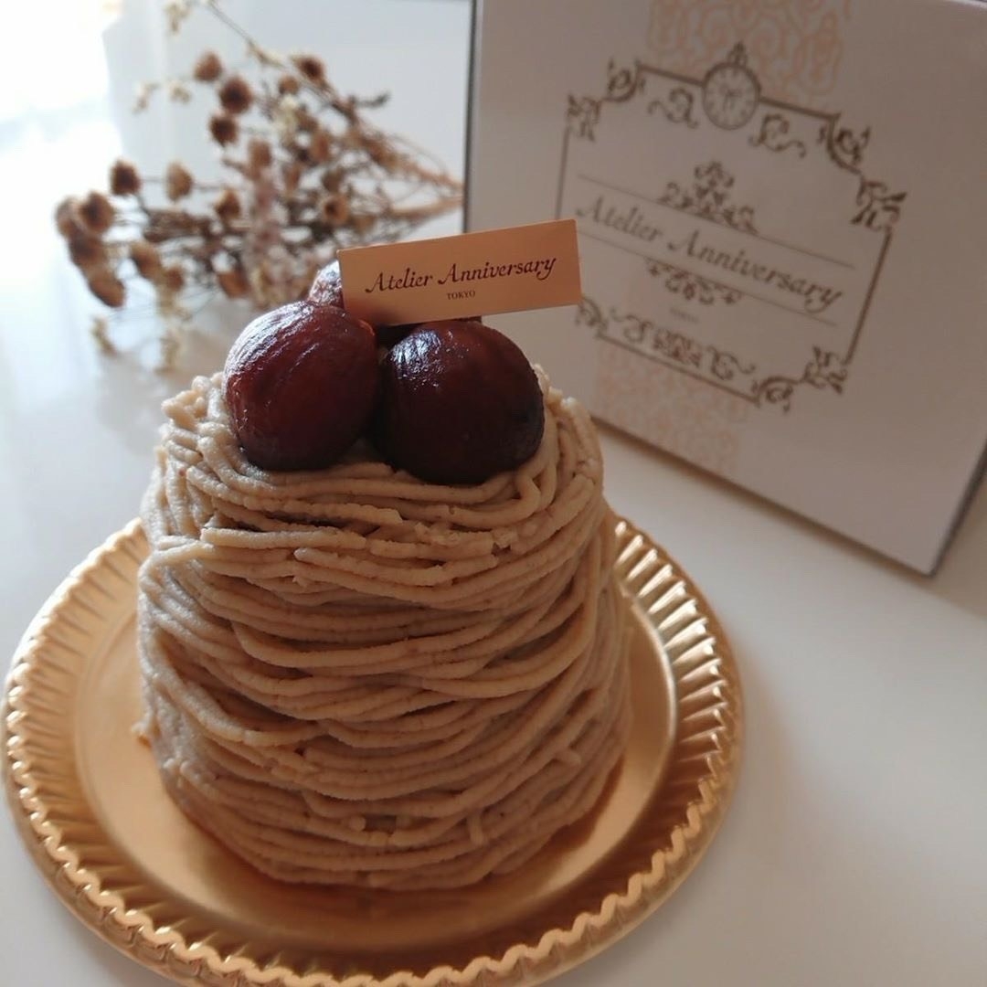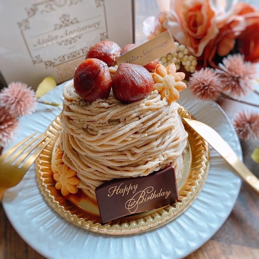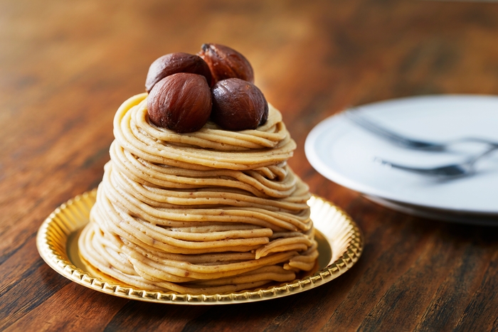 しっとりふわふわなチョコレート味のスポンジ生地に、半分にカットした栗を挟み、創業当初から変わらないAtelier Anniversary特製マロンクリームをふんだんに絞り上げ、最後に栗を丸ごと贅沢に飾り付けて完成です。コクがありながら、なめらかな口当たりのマロンクリームとゴロっと丸ごと使った栗の渋皮煮が絶妙に調和し、秋の味覚を感じさせる逸品です。