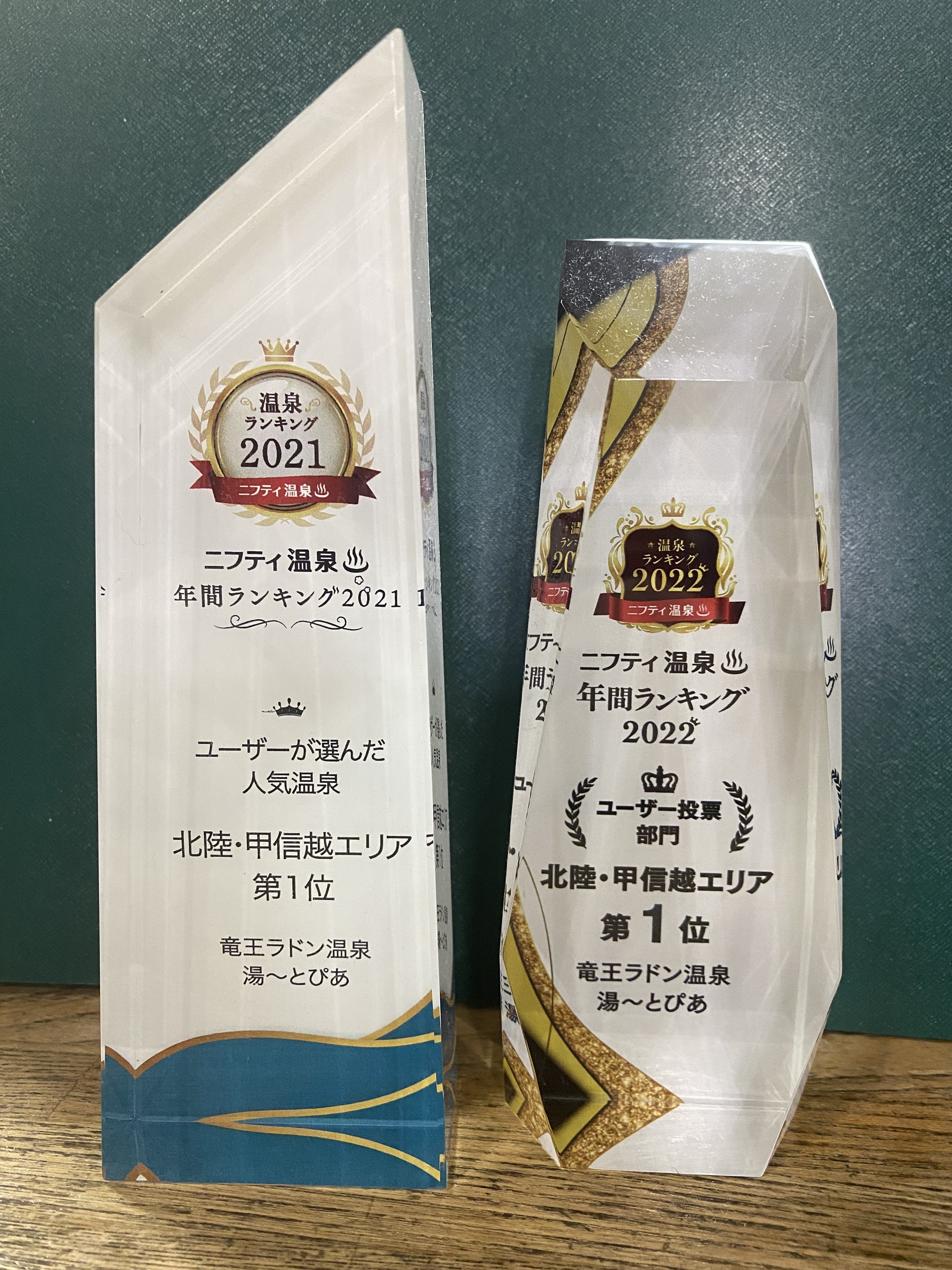 「ニフティ温泉ランキング」は2022年で17年目を迎えたランキングです。「ニフティ温泉」に掲載されている全国16,293件(2022年12月調べ)の温泉・温浴施設を、施設紹介ページの閲覧件数やクチコミ評価、クーポンの利用状況、ユーザー投票などの独自の視点からランキング形式で発表するとされています。2021年12月~2022年11月までの約1年をかけて検討の末、受賞が決定されました。