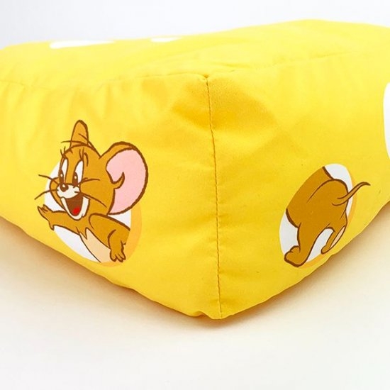 チーズの穴から顔をひょっこり出すジェリー。お尻も可愛い♡こういう遊び心がたまりません、、、!クッションのポケット部分に使わない時は、ブランケットを収納できるのでスッキリと片付きます。