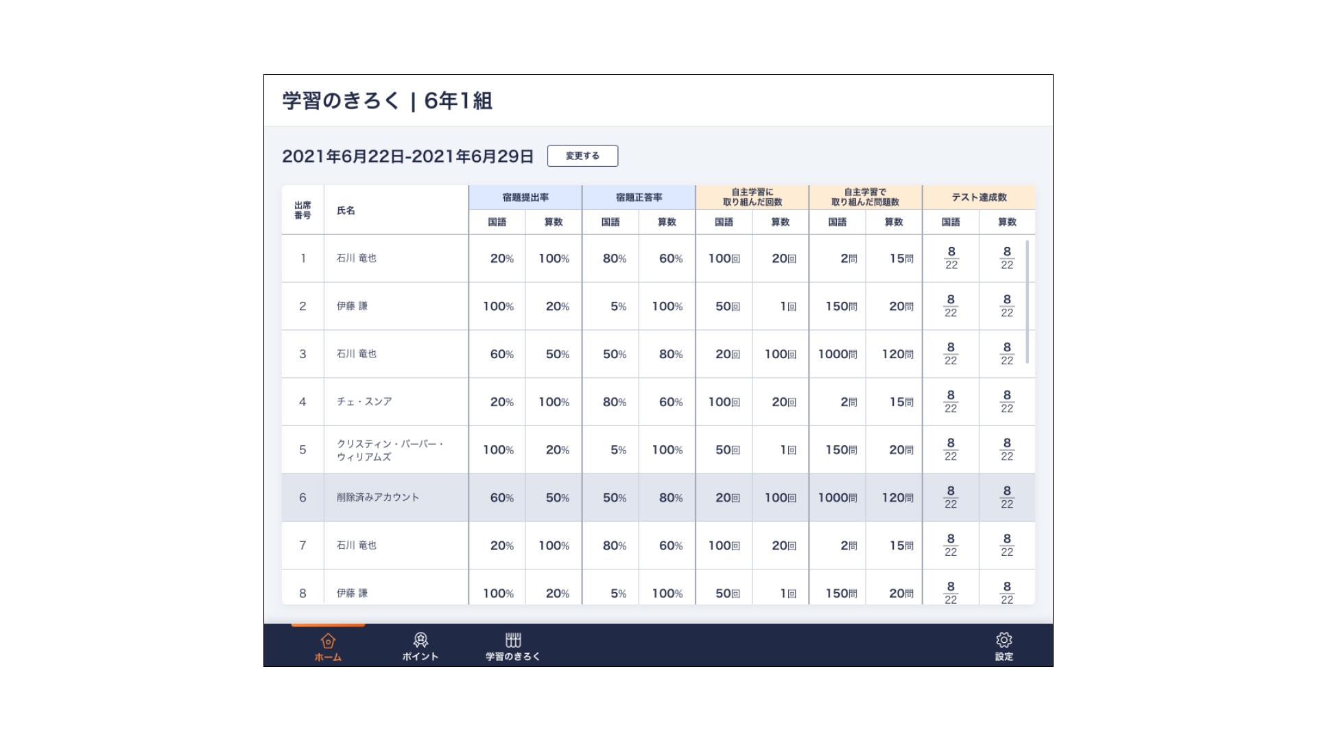 児童の自主学習への取り組み状況がわかる
