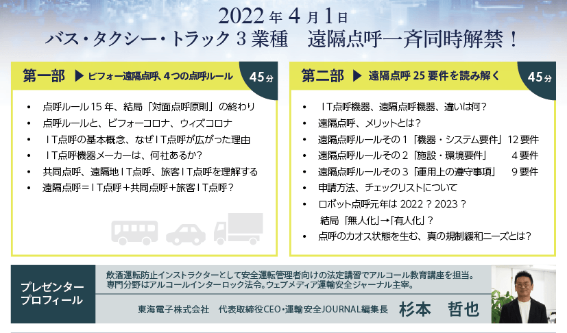 ■詳細はこちらから:【運輸安全JOURNAL主催】2022遠隔点呼元年セミナー