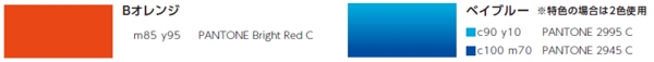 オレンジは「暖かい」「元気」を、青は「誠実」「自由」を表現しています。