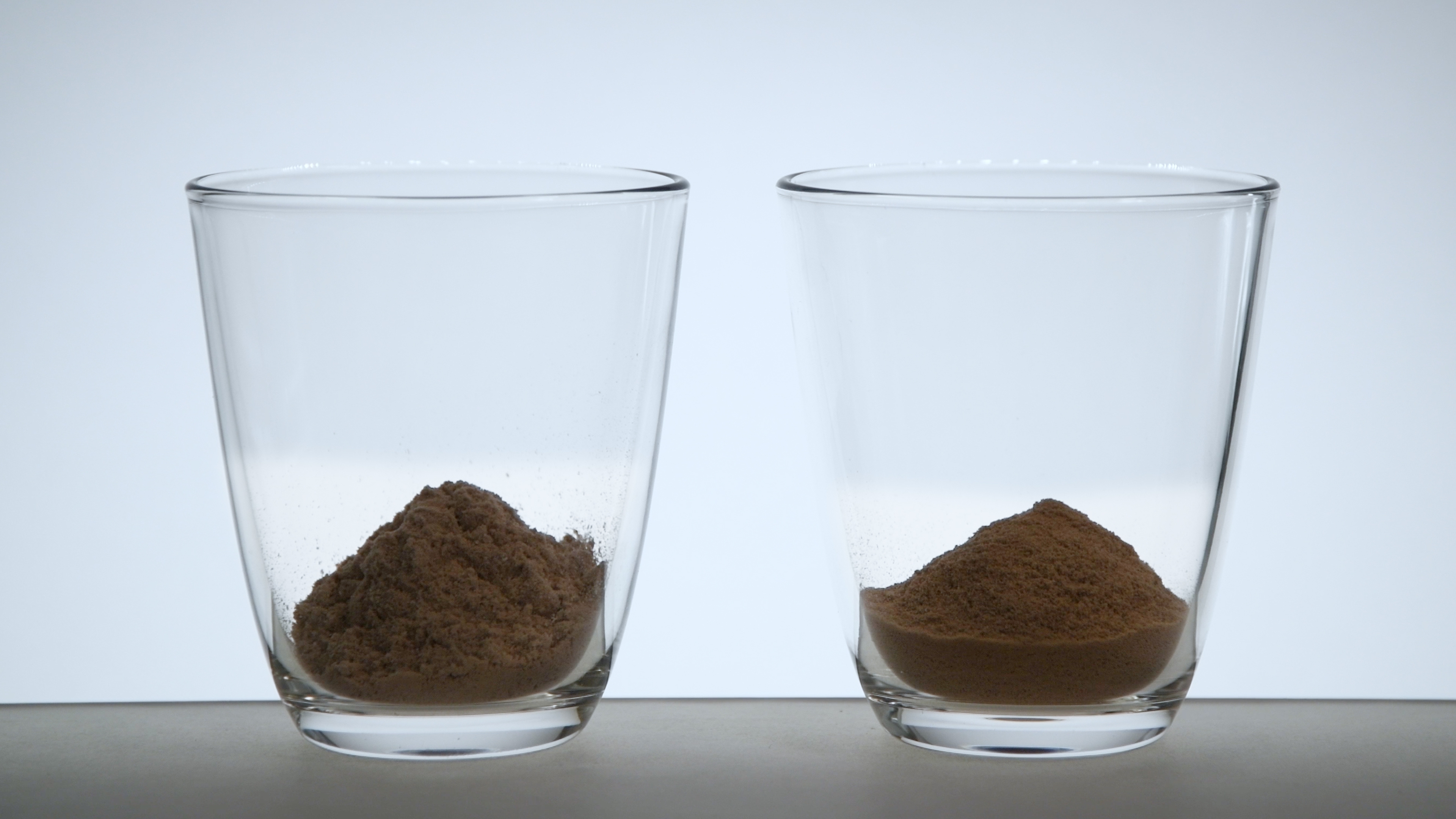 東洋新薬では、大麦若葉末などの天産物を長年粉末青汁製品として造粒してきた製剤技術の知見を用いて、この「溶けにくい」課題を解消することに取り組んできました。その結果、独自に開発した「イージーパウダー(TM)」によって、「シェーカー」を使わずに溶ける粉末プロテインの商品開発が可能となりました。