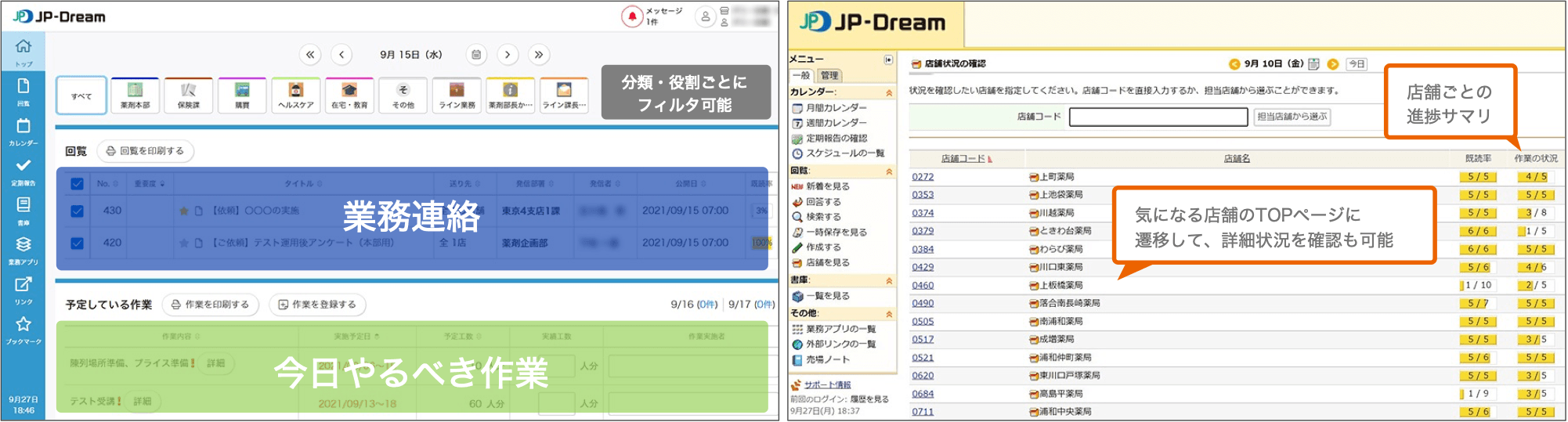 2021年10月1日、「Shopらん」による日本調剤様の全店舗のコミュニケーション改革が始動します。業界屈指の先進的な業務デジタル化事例となるであろう「JP-Dreamプロジェクト」が、日本調剤様における「DX戦略」の土台となり、2030年への長期ビジョン実現に大きく貢献することを期待しています。