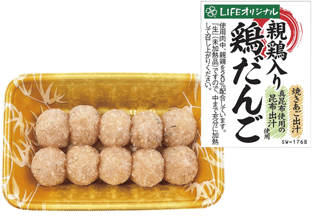 “おいしい”“ワクワク” “ハッピー” をお届けするライフコーポレーションは、鶏の旨みを楽しめる「親鶏入り鶏だんご」を10月にリニューアルいたしました。