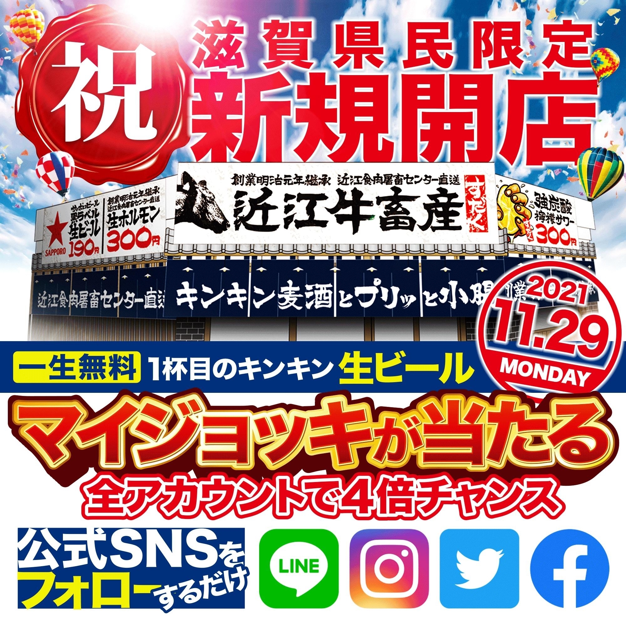 ~オープン記念 滋賀県民限定「一生無料生ビール企画」実施~