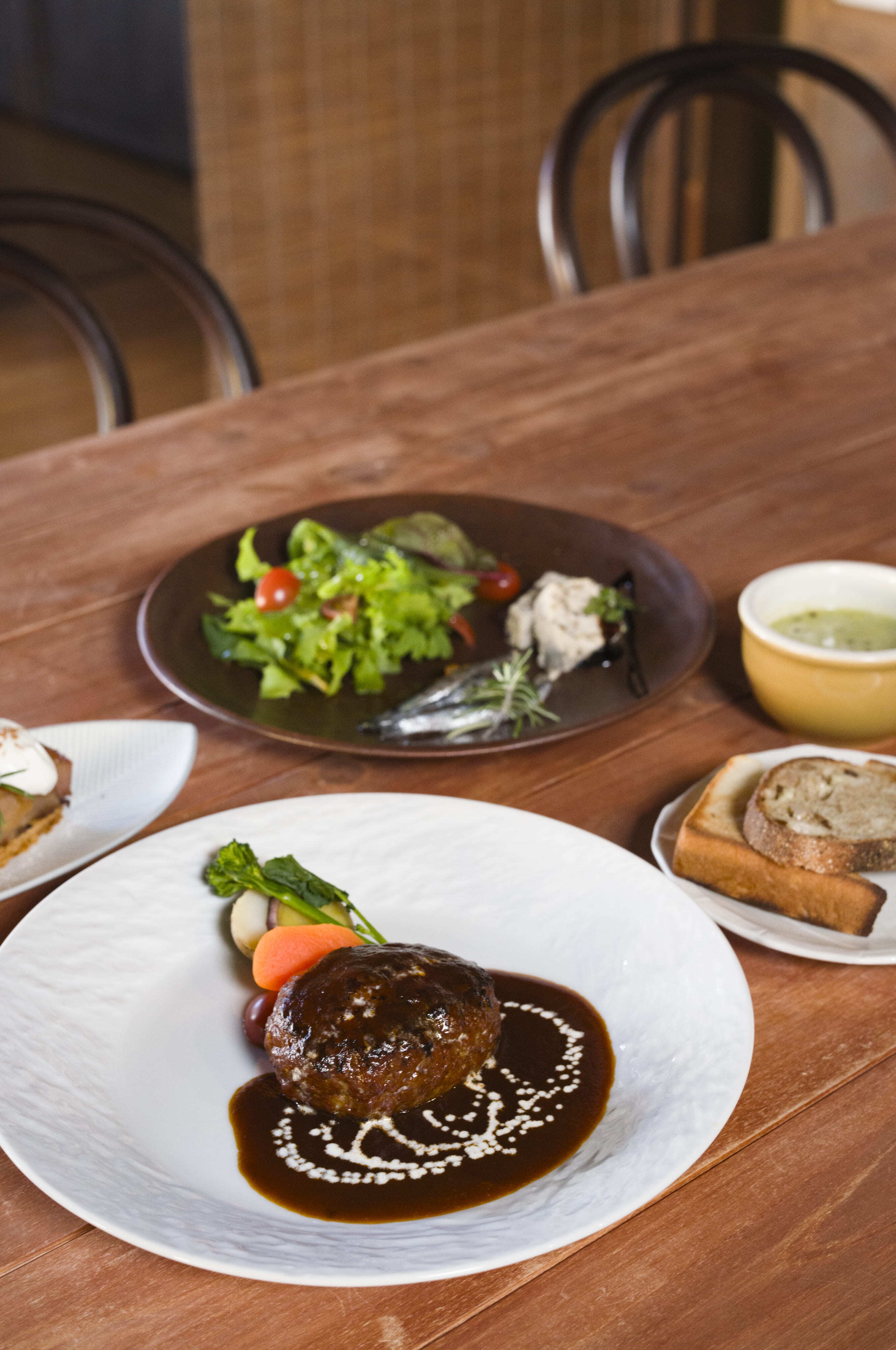 ランチ・カフェタイムは宿泊者以外も来店可能。Bistro Rovenオリジナルのデミグラスソースを使ったロールキャベツ・ハンバーグステーキに加えて、ローブン大多喜町限定の料理も提供。カフェタイムでは千葉県産の小麦や房総の果物を使用したケーキや焼き菓子など、店内およびテイクアウトで利用ができます。