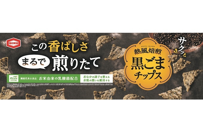 亀田製菓株式会社(本社:新潟県新潟市、代表取締役社長 COO:髙木 政紀)は、機能性表示食品『60g 熱風焙煎 黒ごまチップス』(以下:『熱風焙煎 黒ごまチップス』)を、9月23日(月)より全国にて発売します。亀田製菓が長年研究開発をしているお米由来の乳酸菌K-1を添加することで、日本の米菓・スナックで初めて※「おなかの調子を整える」機能と「お肌の潤いを維持する」機能を表示した機能性表示食品です。