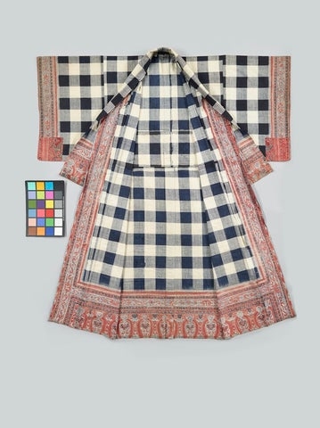輸入されたインド更紗は、主に小袖や陣羽織として仕立てられていました。江戸時代初期の絵画資料には更紗の小袖をまとった人物像が描かれており、この頃からすでに異国情緒あふれる珍しい模様に人々が深い関心を寄せていたことがうかがえます。しかし、更紗は文政8(1825)年の奢侈禁止令の対象に。表立って身につけることが難しくなると、今度は下着や襦袢、着物裏、間着(打掛の下に着る小袖)など、外からは見えない部分に更紗生地を使用。江戸っ子ならではの柔軟な発想でオシャレを楽しみ、粋を競っていたようです。