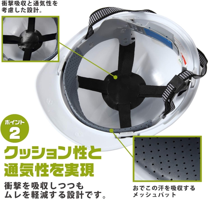 防災ヘルメットは、衝撃吸収性を高めるためのクッション性と、長時間の使用でもムレを軽減する通気性を考慮したデザインが特徴です。ヘッドバンドと顎下ベルトの二箇所で調整でき、頭部にしっかりとフィットするため、揺れや激しい動きにも強いです。また、わずか285gという軽量さで、女性や高齢者にも扱いやすい設計となっています。