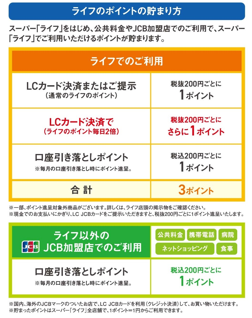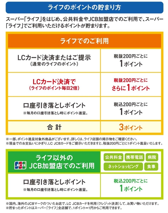 その①「LC JCBカード」決済限定!ライフでのお買い物で“毎日ポイント2倍”
