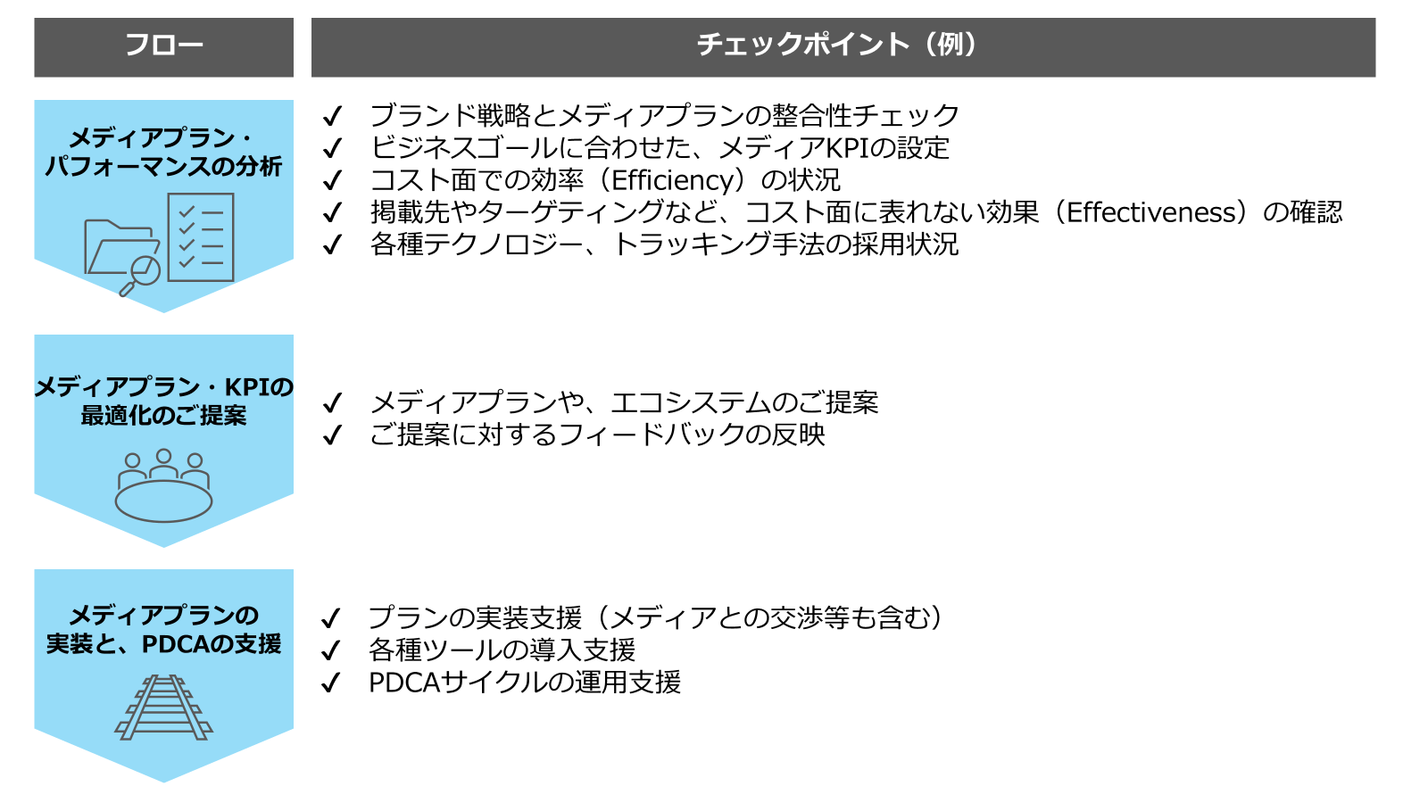 しばしば、分かりやすさからリーチやクリックの効率を重視されることで、実はブランドにとって好ましくないコミュニケーションがデジタル上で行われていたというケースがあります。CEESAWでは、広告プランニング内容やバイイングの実績から広告プランを無料でチェックし、改善提案を提供することで、デジタル広告業界全体の広告投資の質の向上を目指したいと考えております。