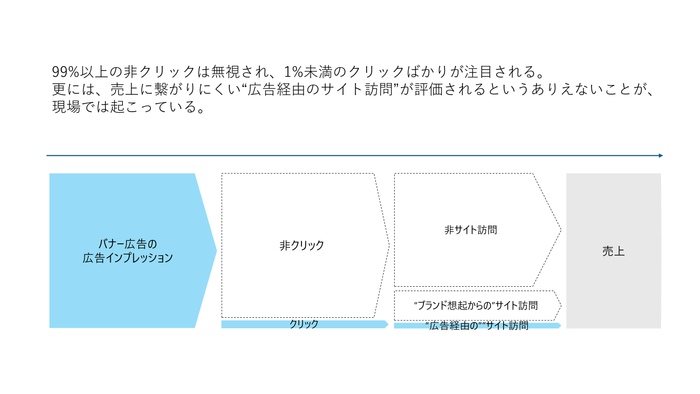 CEESAWでは、デジタルメディアバイイングにおける現状を「木を見て森を見ず」と捉えています。1%にも満たないクリック、広告経由のサイトへのトラフィックを分析する一方で、残りの99%をどう分析・評価するかに時間を使うべきではないでしょうか。