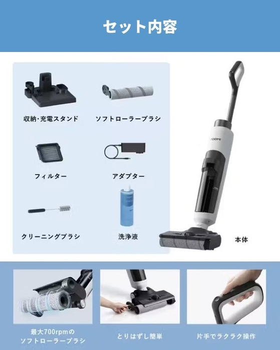✅ 掃除機とモップの2役を同時にこなすから、時短&手間いらず!