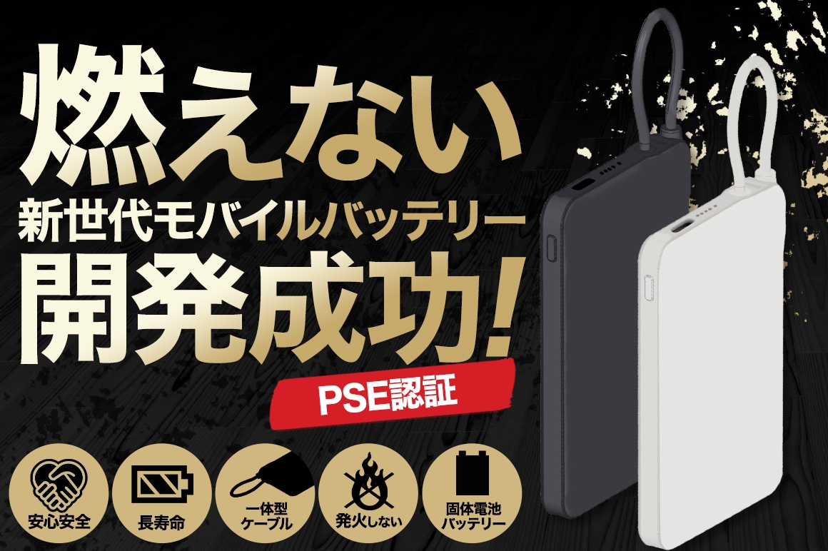 衝撃に強く発火しない!安全性抜群の 「新世代モバイルバッテリー」先行予約販売開始