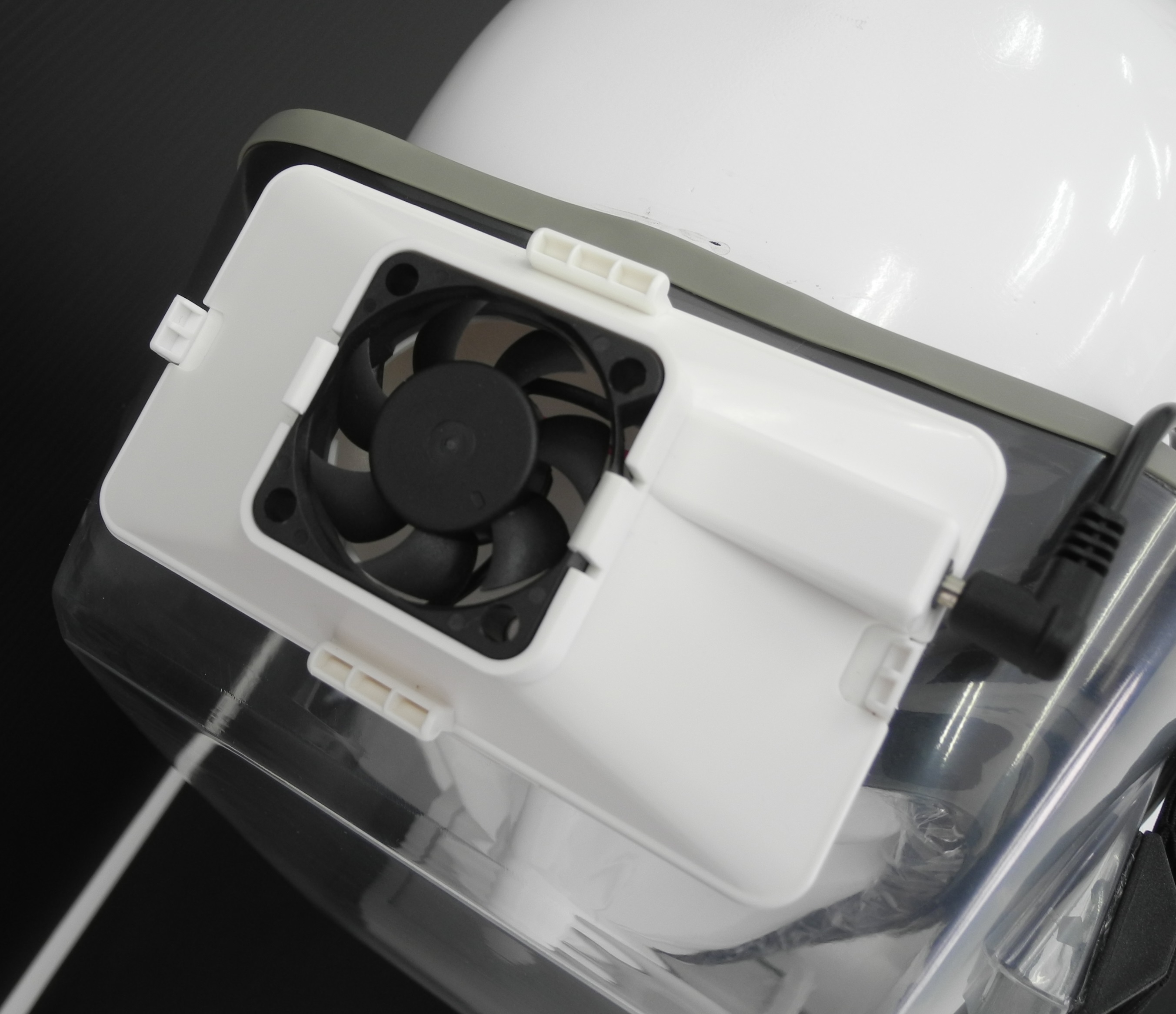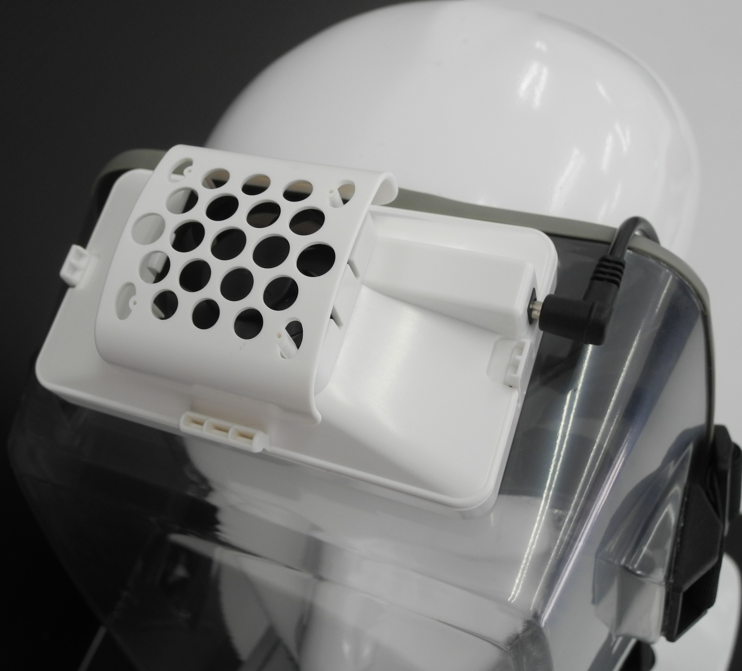 従来の遠心ファンから低振性、騒音性に優れた40mm×40mmのプロペラファンを使用。フィルターを通して、22L/minの空気をシールド内部へ取り込みます。