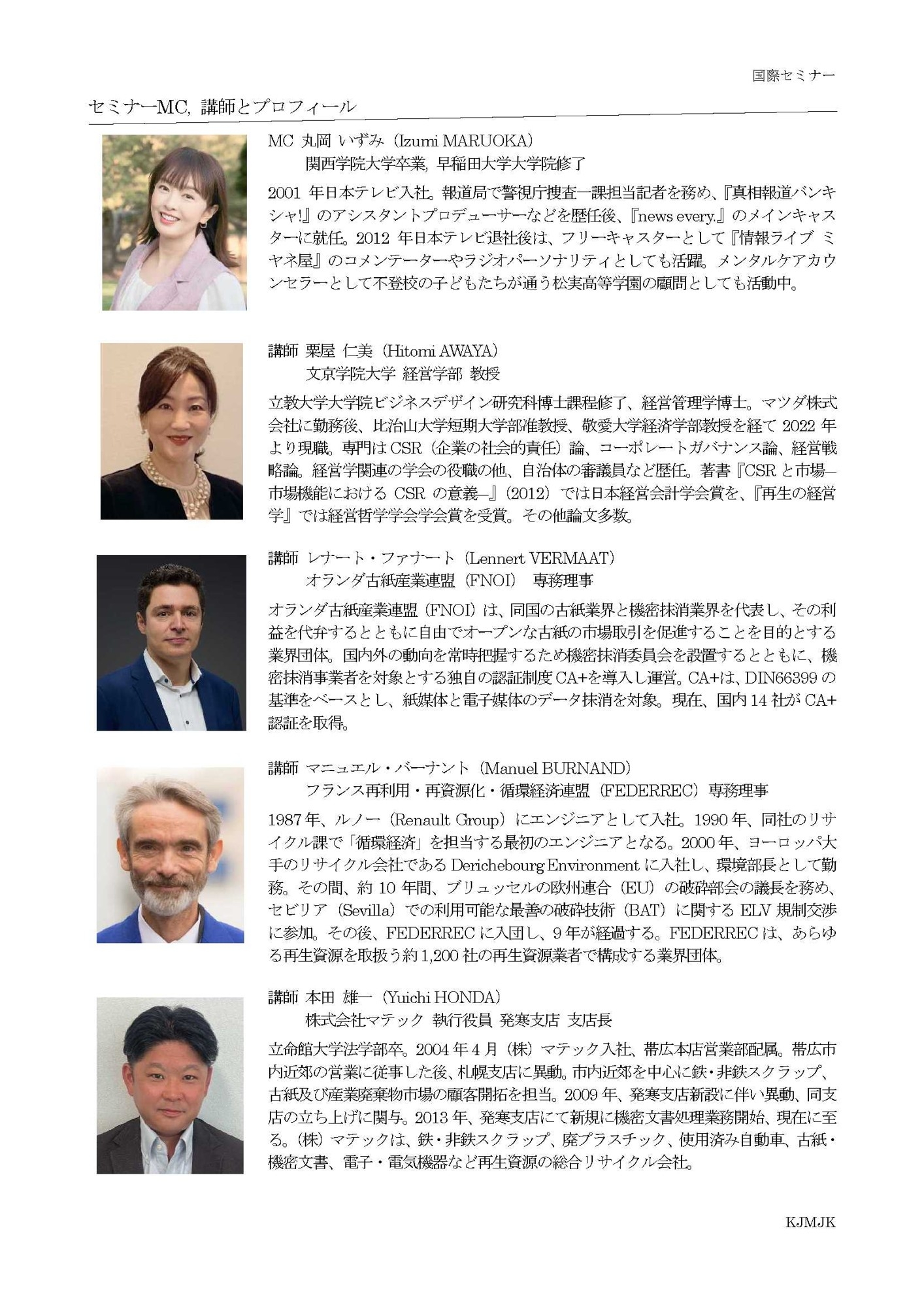 11月11日に品川ザ・グランドホールにて、一般社団法人化10周年記念を兼ねて、国内外4講師を招聘し、CSR、情報セキュリティ、サーキュラーエコノミーをサブタイトルとして「機密抹消国際セミナー」を開催します。