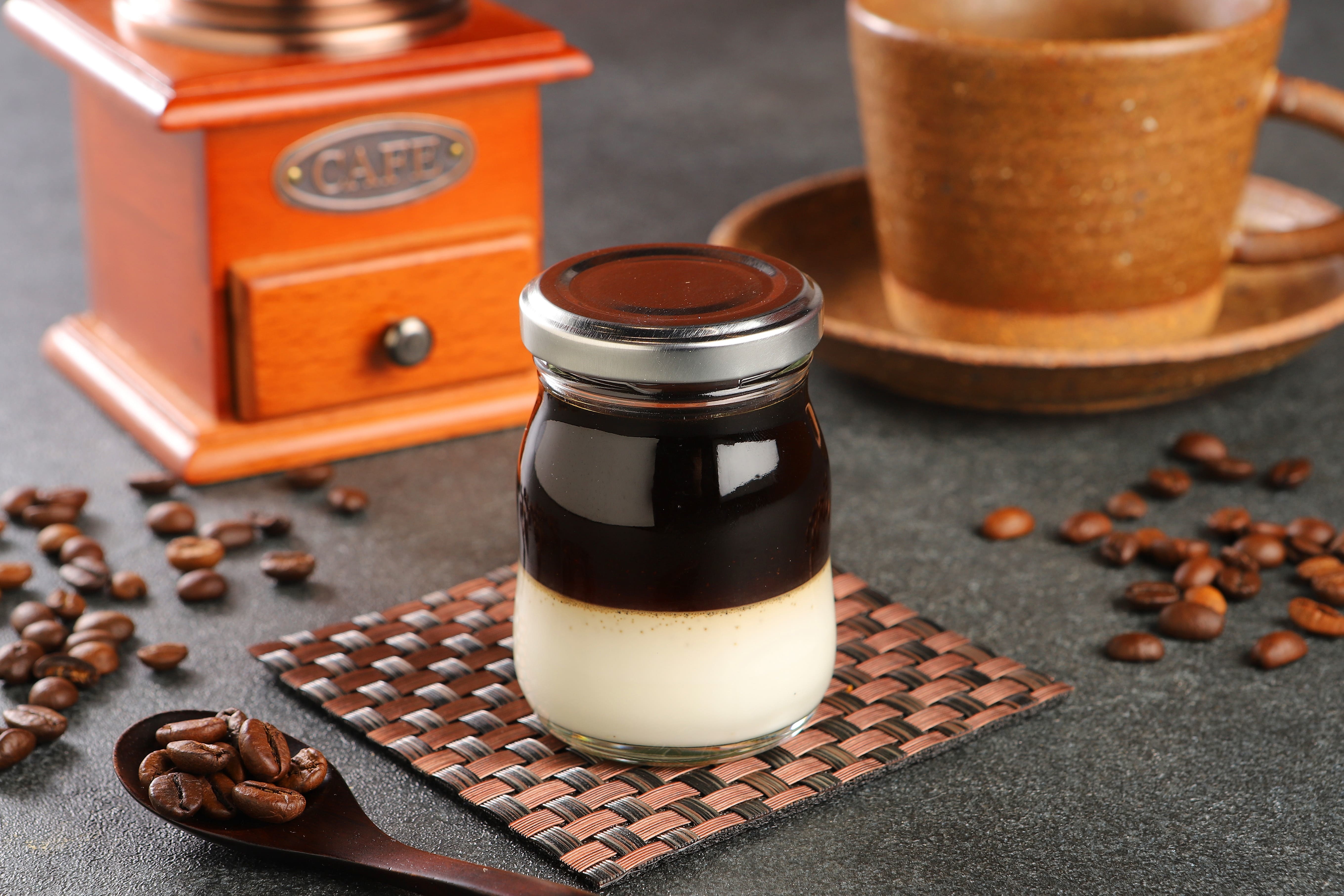 自家焙煎珈琲専門店「緑の館 高山店」様より当店のプリン専用に特別に珈琲豆を焙煎、調合していただきました。
