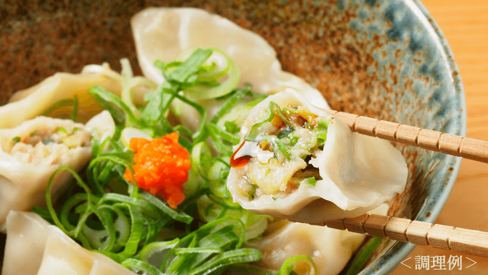 「北島ワインポークを味わう粗挽きギョーザ」は、焼き餃子として食べると、北島ワインポークのジューシーな旨味が溢れ出し、香ばしさを楽しむことができます。また、水餃子にすると肉質をよりしっかりと味わうこともでき、大人から子供まで楽しめる、少し特別感を味わえる逸品です。
