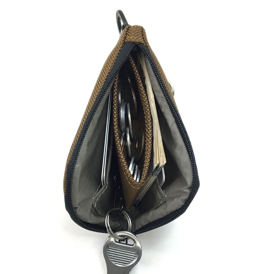常に持ち歩くミニウォレットこそ毎日の酷使に耐える頑丈さが必要だという結論に至り、頑強な1680D コーデュラ バリスティック(R)ナイロンを採用。さらにサイズや細部も完全に納得のいくまで仕様変更を繰り返しました。