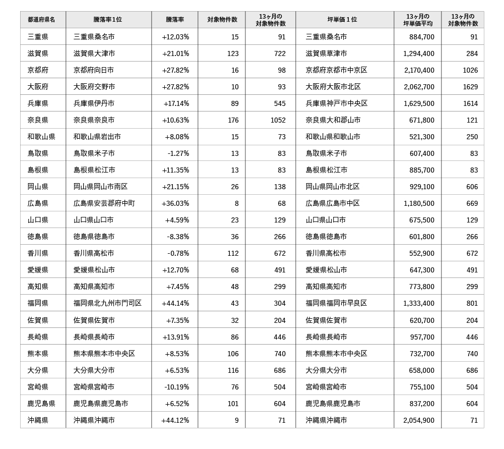・全国1位は「福岡県北九州市門司区」の+44.14%。