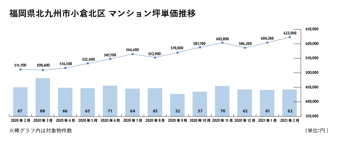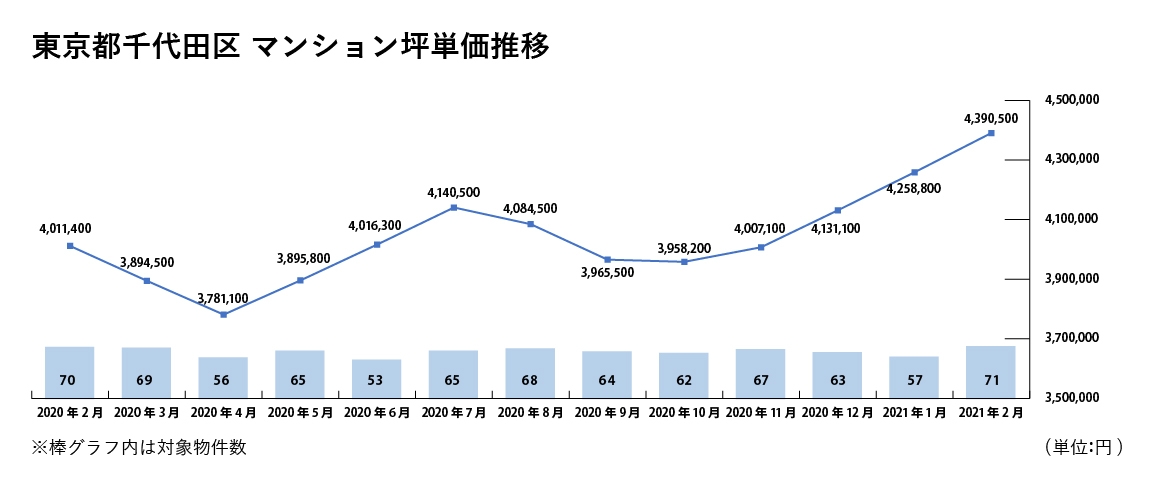 ―2020年2月~2021年2月の坪単価の変遷と騰落率を調査―