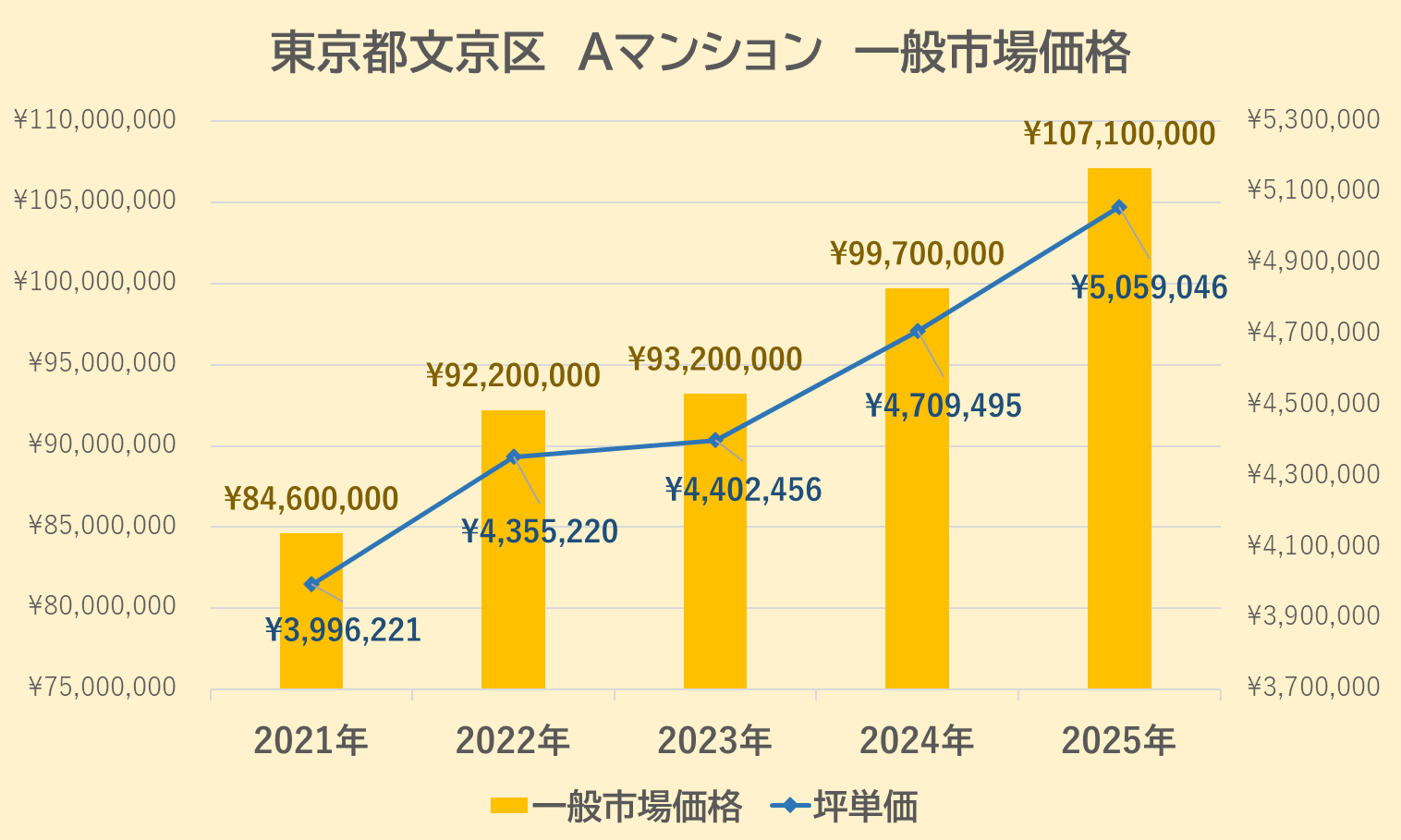 Aマンションの一般市場価格・坪単価の推移は上記【図3】の通りです。