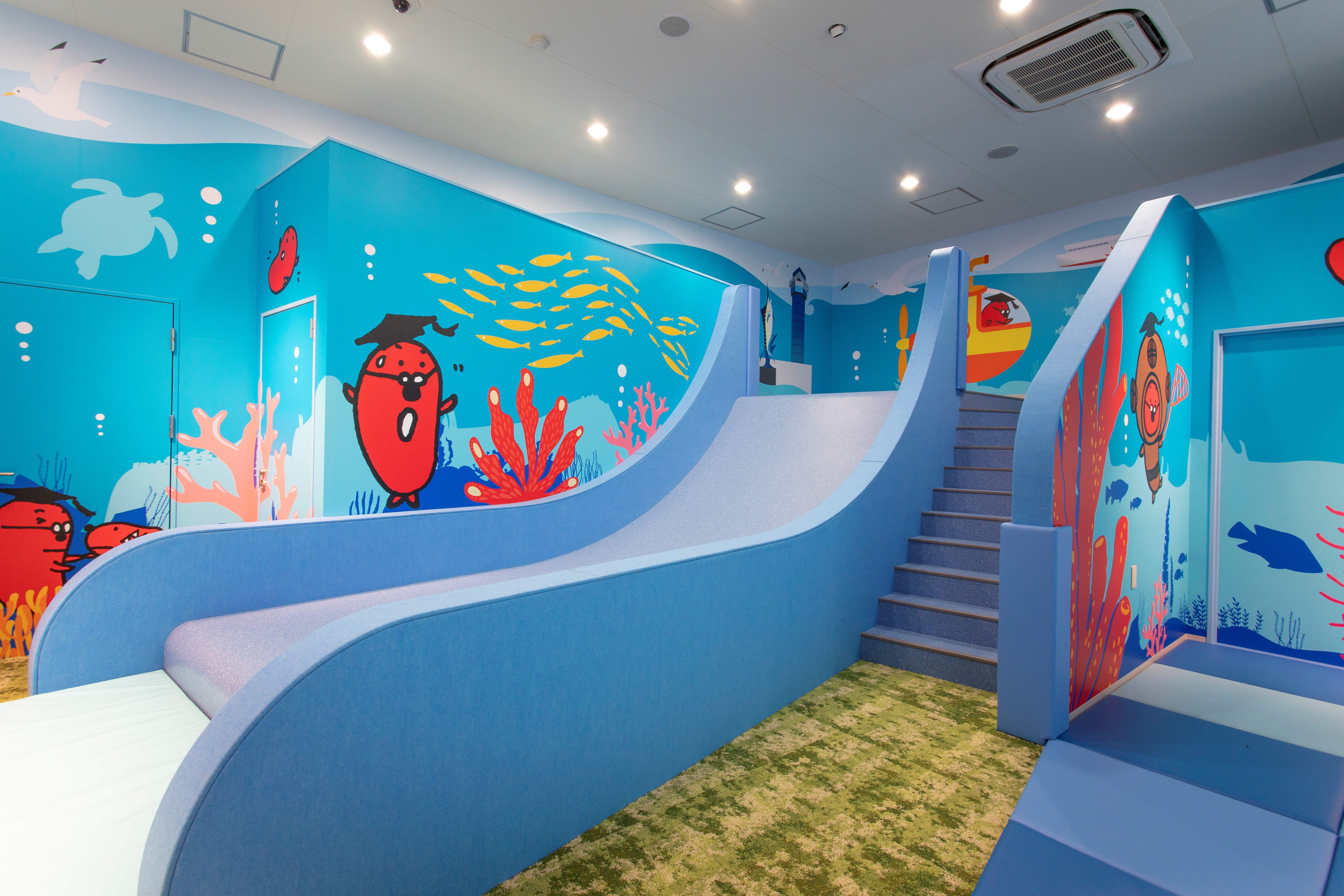 お子様が楽しく遊べる場所です。大きなすべり台やタッチパネル中に、めんたいパークのマスコットキャラクター「タラピヨ」や「タラコン博士」も隠れているかもしれません。探してみてください。キッズランドは無料です。