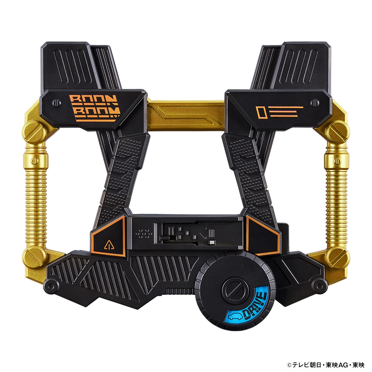 ブンブンブースターには阿久瀬錠(演:齋藤璃佑)、振騎玄蕃(演:相馬理)のキャラクターボイスのほか、範道大也(演:井内悠陽)、鳴田射士郎(演:葉山侑樹)、志布戸未来(演:鈴木美羽)、焔先斗(演:宮澤佑)のボイスも含めた6人同時変身音声、またブンドリオ(声:松本梨香)のブンブンカー発進セリフも収録しております。