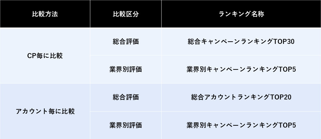 また、キャンペーンランキングをベースとし、アカウント軸においても評価を行うアカウントランキングも併設予定です。
