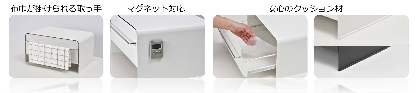 ・本体のストッパーに音を軽減するフェルト製クッションが貼ってあるので、引き出し開閉時の金属同士がぶつかるガチャガチャ音を軽減し、ストレスフリーなご使用を体感していただけます。
