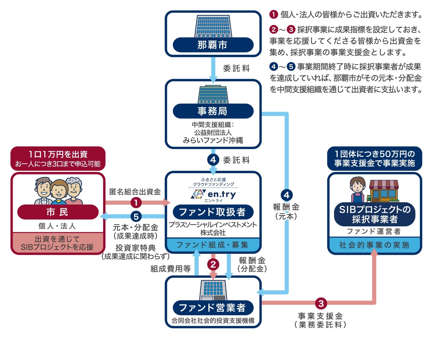 プラスソーシャルインベストメント株式会社(代表取締役社長 野池雅人、京都市)は、那覇市版SIBの2つのプロジェクト(1口金額1万円)を組成し、2025年6月27日から社会的投資の手法を用いたふるさと応援クラウドファンディング「エントライ」で出資者を募集します。