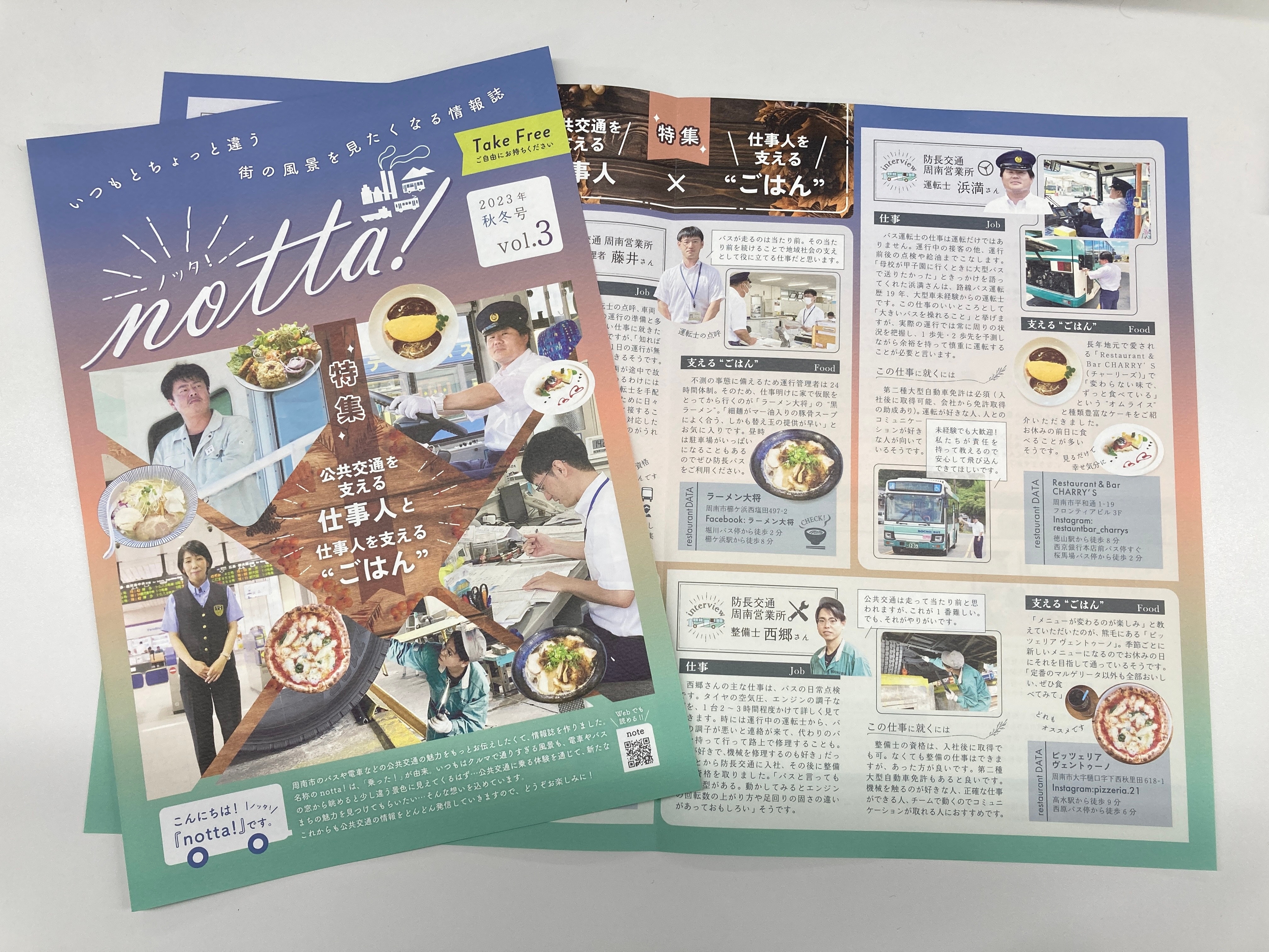 notta!は周南市内の公共施設や学校等で配布しています。特集記事については、WEB記事としてシティプロモーションスペシャルサイトや周南市公式noteでお読みいただけます。