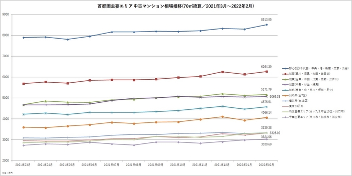 ■主要エリア 中古マンション相場推移(2021年3月~2022年2月)