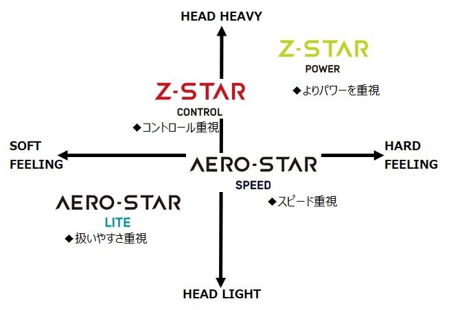 「Z-STAR CONTROL」は正確なショットを可能にするバランスの良いオールラウンドモデル、「Z-STAR POWER」はスマッシュの球威を出すことを目標に開発されたモデルです。