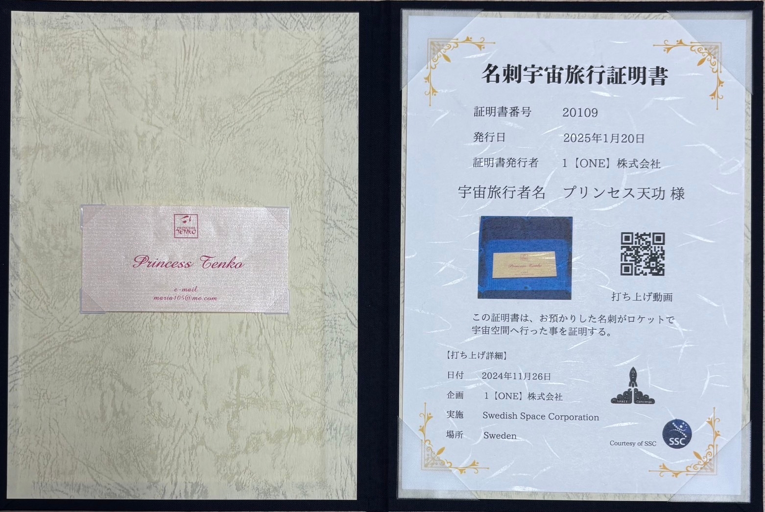 無重力空間を旅した名刺は帰還後、証明書と共に額装して参加者のもとへ届けられ、大きな反響を呼びました。