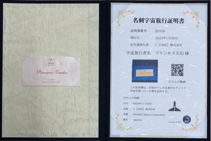 1【ONE】株式会社(本社:東京都千代田区、代表取締役:前田 和彦)は、名刺を宇宙空間に打ち上げる画期的なサービス「名刺宇宙旅行」において、第一回打ち上げのご好評をいただいたことへの感謝を込め、390名様限定・39,000円(税込)キャンペーンを開始いたします。