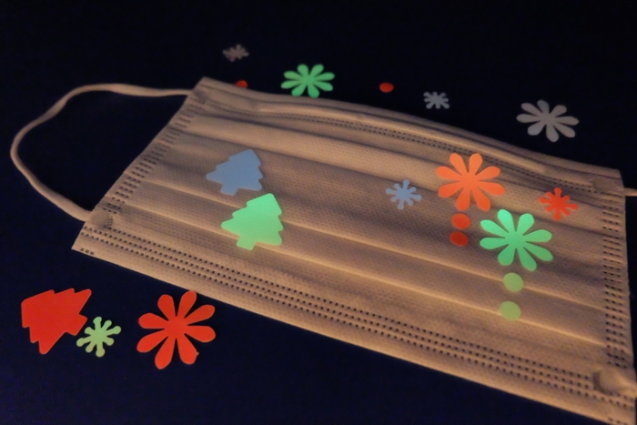 また、マスクを可愛いらしく彩る、光るシールをプレゼント。花火型やツリー型のシールをマスクに貼り、輝くツリーの前で写真を撮るのもおすすめです。感染対策しながら、イベントを楽しむことができます。