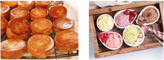 レストランで焼き上げる【クイニーアマン】は外なカリカリ、中はもっちり。たっぷり使ったバターがリッチな味わいのフランス・ブルターニュ地方の伝統的なお菓子です。白砂糖でなく、黒砂糖を使っているのがコラソン風。コクのある甘さには赤ワインがぴったりです。もちろんコーヒーや紅茶でも。豊富なイタリアンジェラートもお見逃しなく。