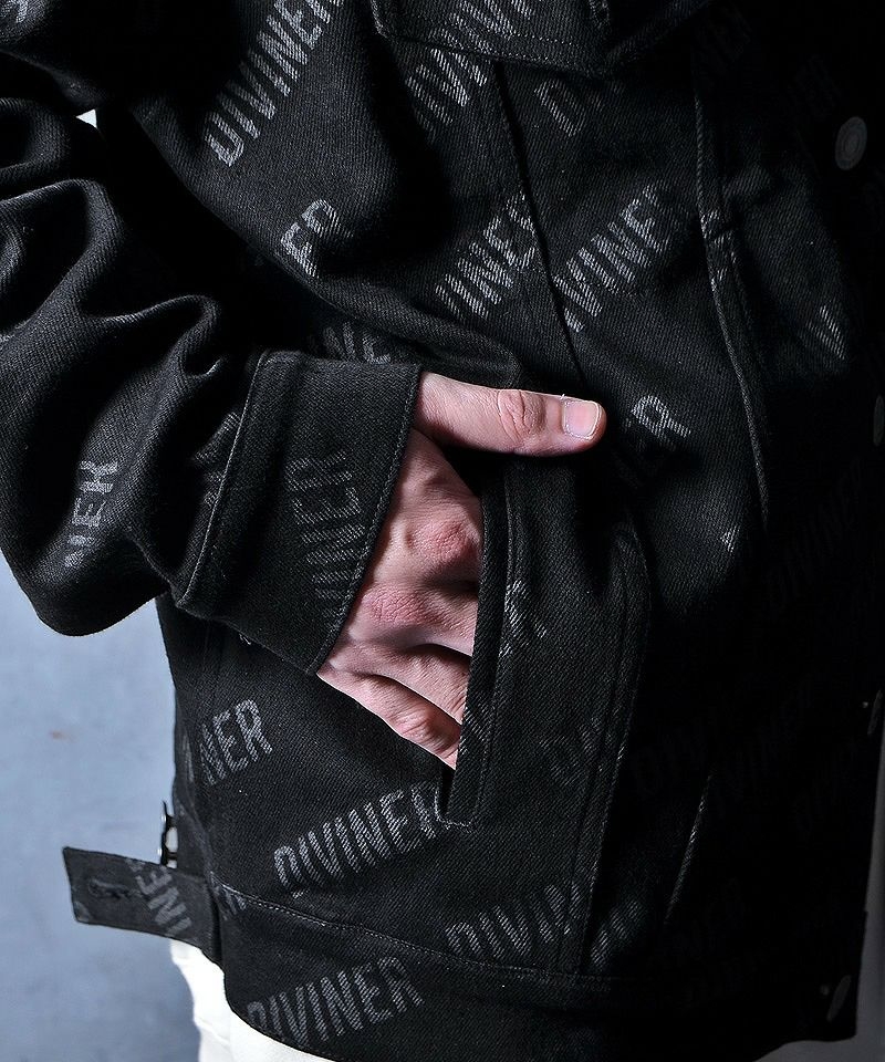 DIVINERらしいブラックを基調としたデニムジャケットに、ブランドロゴを全体に散りばめたひと品は、何度も自分自身と向き合い、その末に誕生した自分だけの信念を表現しました。
